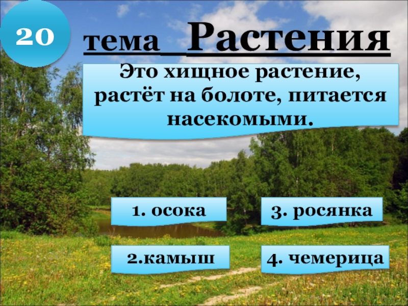 Это хищное растение, растёт на болоте, питается насекомыми.