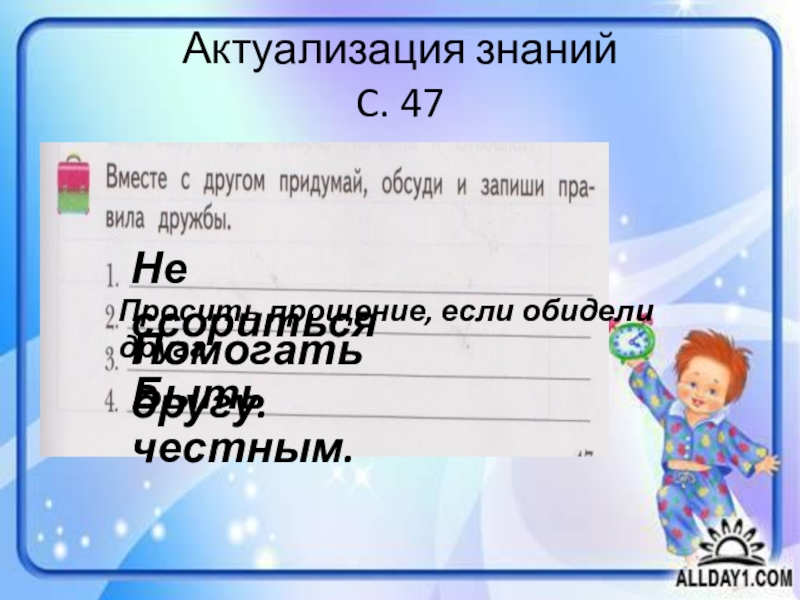Это сайт презентаций, где можно хранить и обмениваться своими презентациями, докладами, проектами, шаблонами в формате PowerPoint с другими пользователями. Мы помогаем школьникам, студентам, учителям, преподавателям хранить и обмениваться учебными материалами.