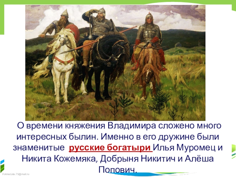 Слайд 37 О времени княжения Владимира сложено много интересных былин. Именно в его