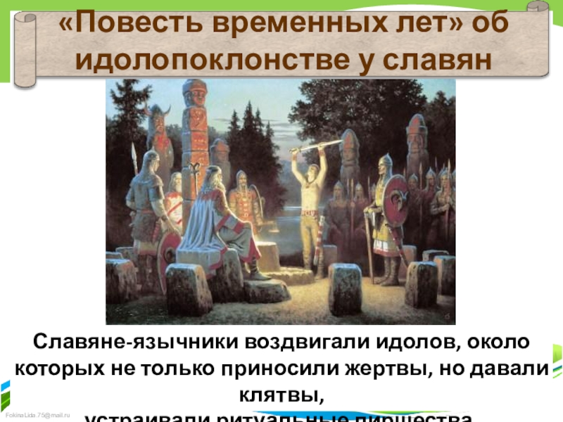 Слайд 5Славяне-язычники воздвигали идолов, около которых не только приносили жертвы, но давали