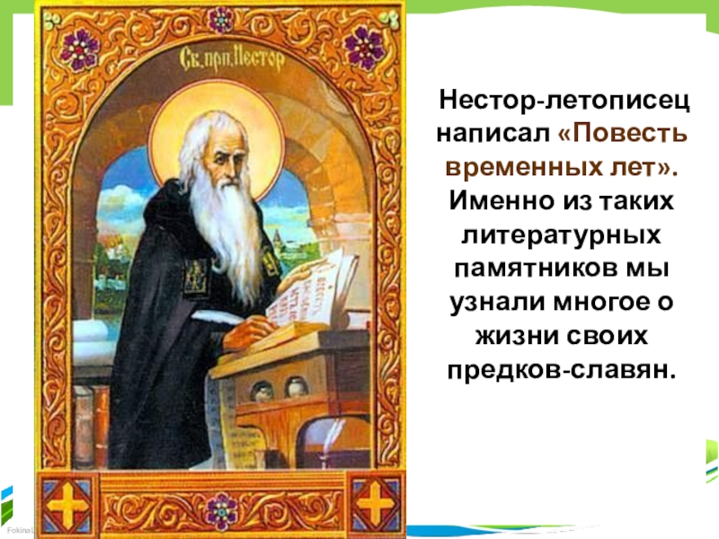 Слайд 3 Нестор-летописец написал «Повесть временных лет». Именно из таких литературных памятников