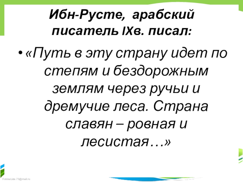 Слайд 7Ибн-Русте, арабский писатель IXв. писал:
