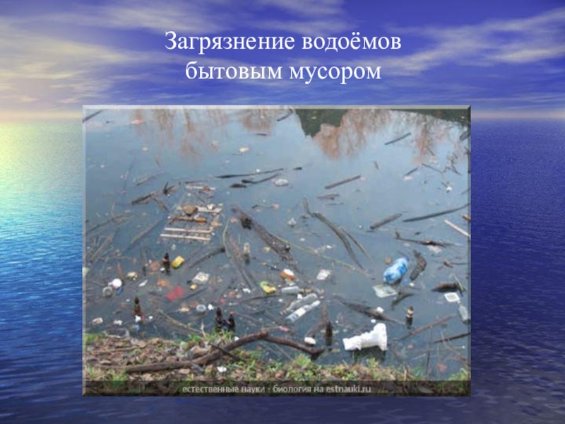Слайд 19Загрязнение водоёмов