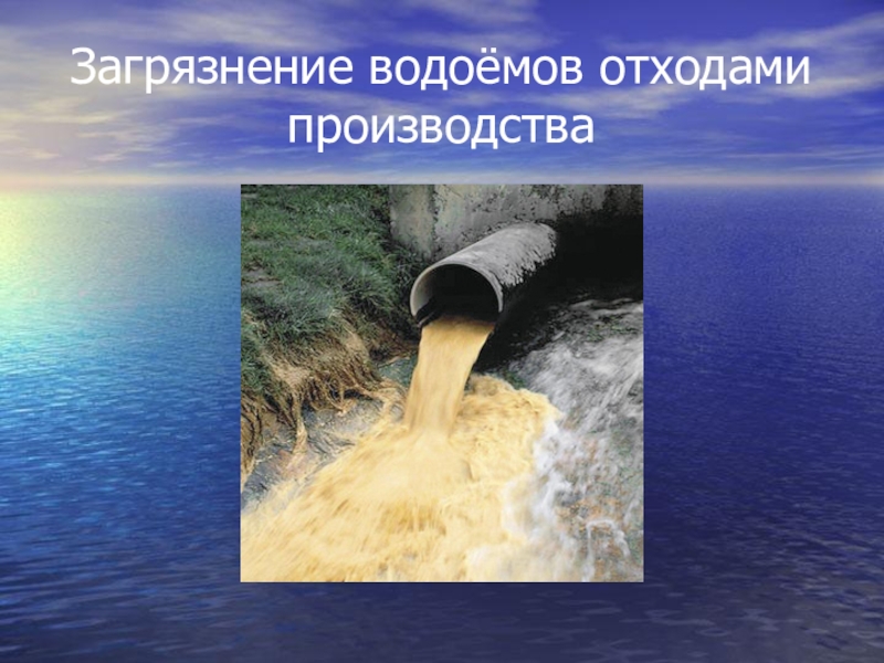 Слайд 31Загрязнение водоёмов отходами производства