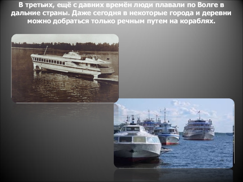 Слайд 6В третьих, ещё с давних времён люди плавали по Волге в