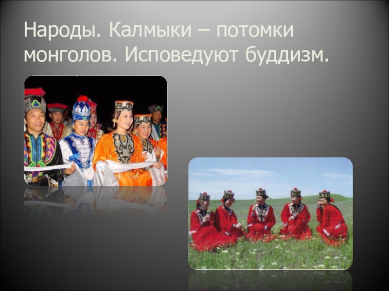 Слайд 9Народы. Калмыки – потомки монголов. Исповедуют буддизм.