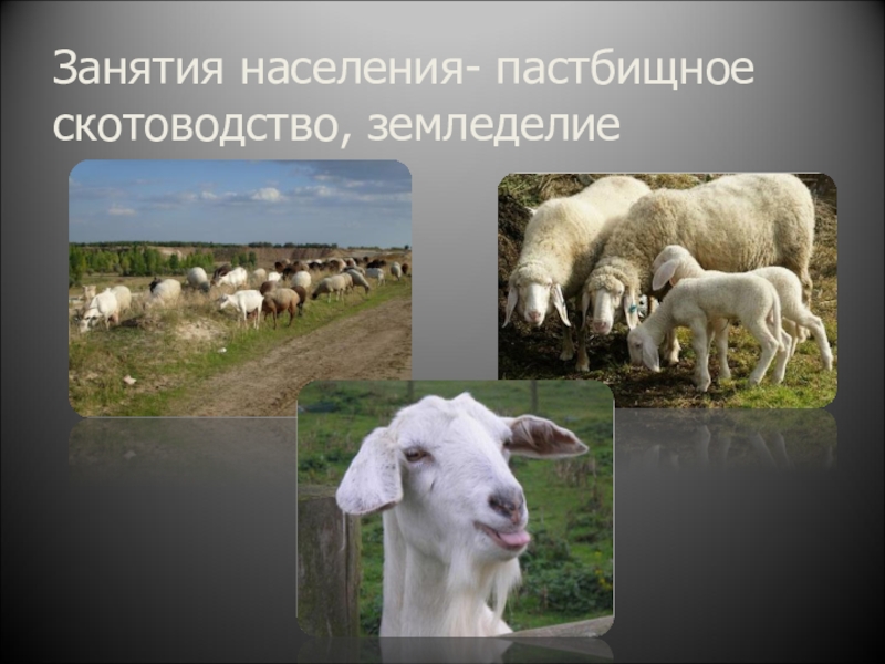 Слайд 10Занятия населения- пастбищное скотоводство, земледелие