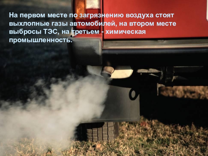 На первом месте по загрязнению воздуха стоят выхлопные газы автомобилей, на втором месте выбросы ТЭС, на третьем - химическая промышленность.