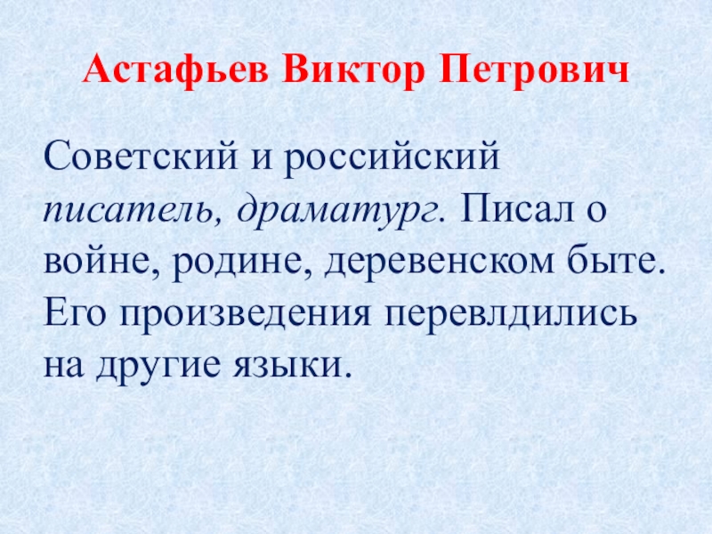 Советский и российский писатель, драматург. Писал о войне, родине,