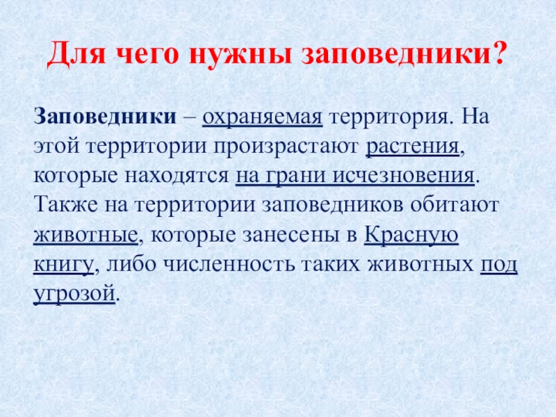 растения, которые находятся на грани исчезновения. Также на территории заповедников обитают животные, которые занесены в Красную книгу, либо численность таких животных под угрозой.