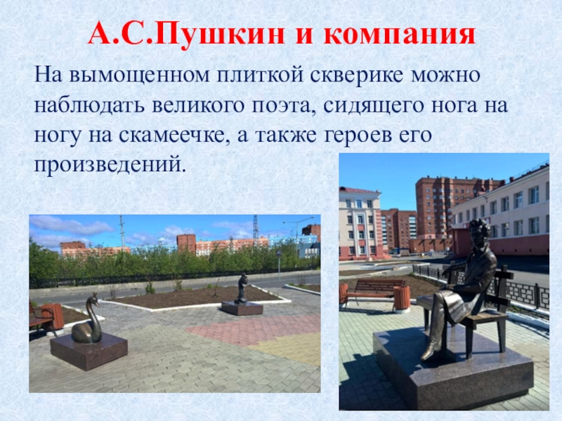 На вымощенном плиткой скверике можно наблюдать великого поэта, сидящего