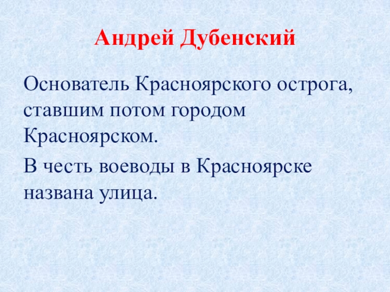 Основатель Красноярского острога, ставшим потом городом Красноярском.