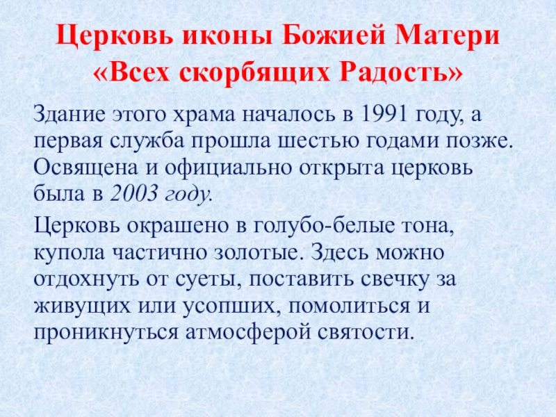 Слайд 24Церковь иконы Божией Матери «Всех скорбящих Радость»