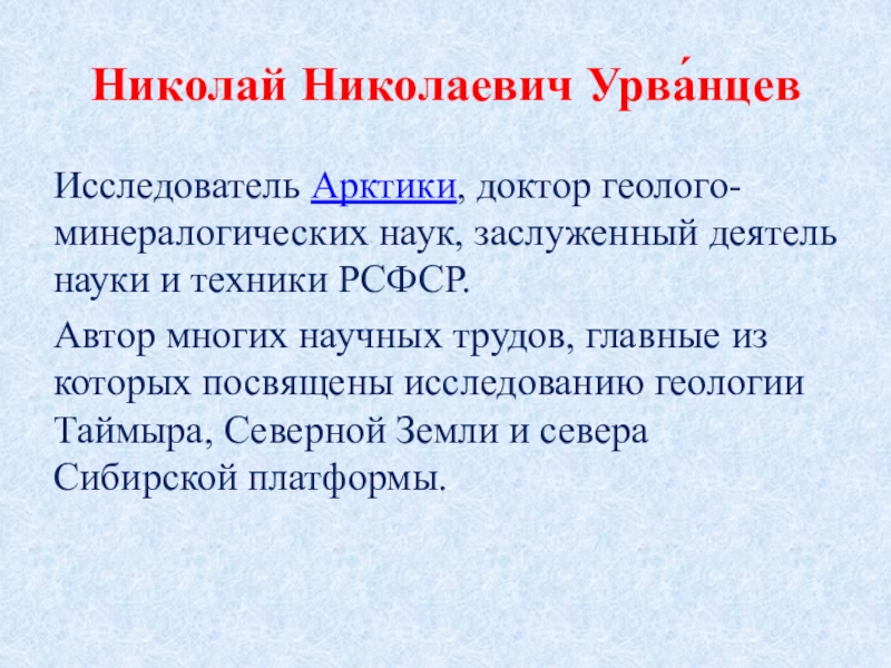 Исследователь Арктики, доктор геолого-минералогических наук, заслуженный деятель науки