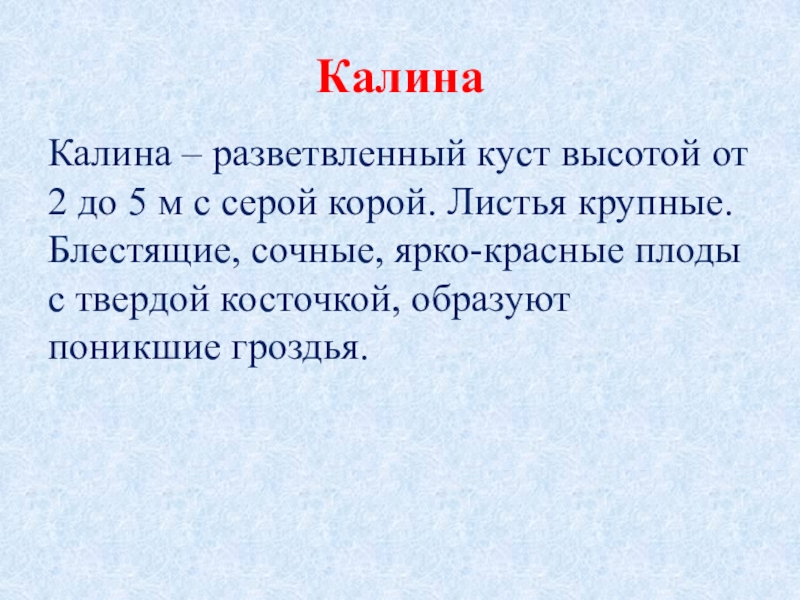Калина – разветвленный куст высотой от 2 до 5 м с
