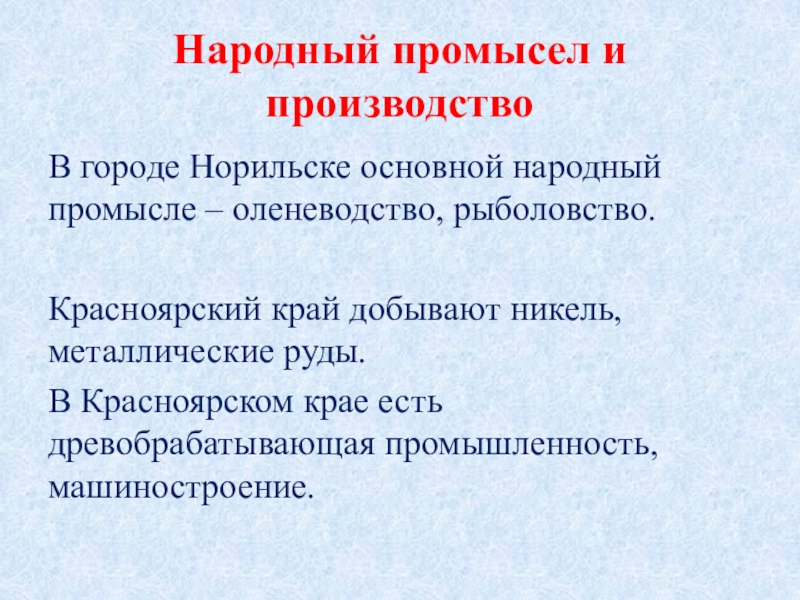 В Красноярском крае есть древобрабатывающая промышленность, машиностроение.
