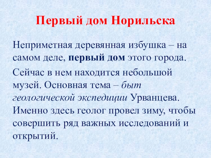 Сейчас в нем находится небольшой музей. Основная тема – быт геологической экспедиции Урванцева. Именно здесь геолог провел зиму, чтобы совершить ряд важных исследований и открытий.