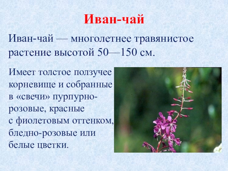 Иван-чай — многолетнее травянистое растение высотой 50—150 см.