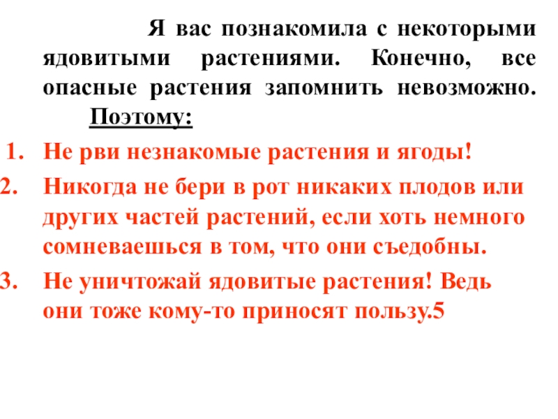 с некоторыми ядовитыми растениями. Конечно, все опасные растения запомнить невозможно. Поэтому: