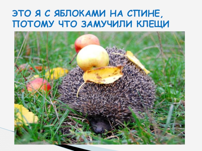 Слайд 8ЭТО Я С ЯБЛОКАМИ НА СПИНЕ, ПОТОМУ ЧТО ЗАМУЧИЛИ КЛЕЩИ