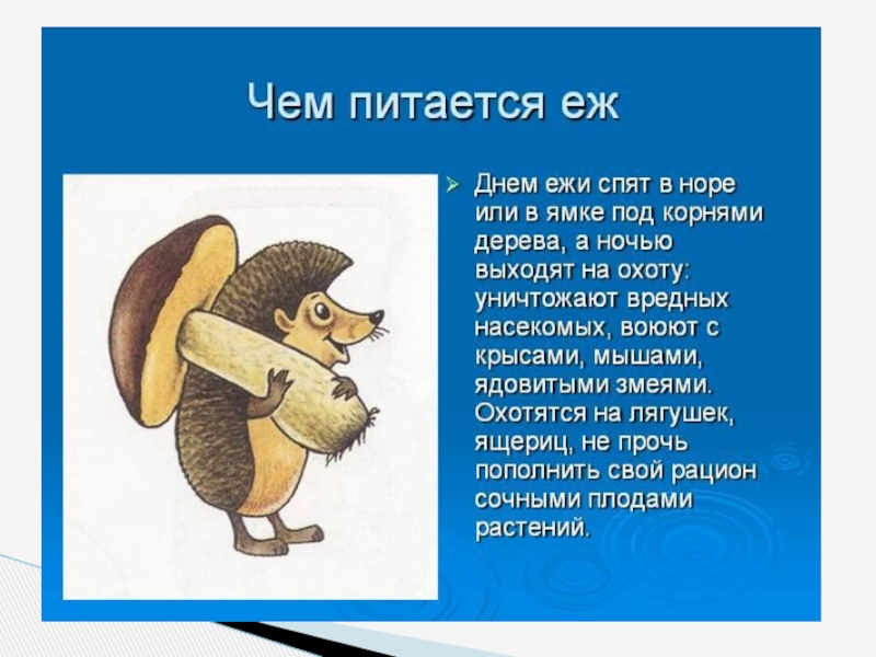 Презентация, доклад по окружающему миру Ёжик