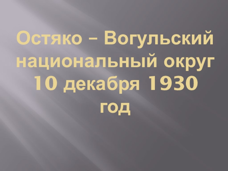 Слайд 8Остяко – Вогульский национальный округ 10 декабря 1930 год