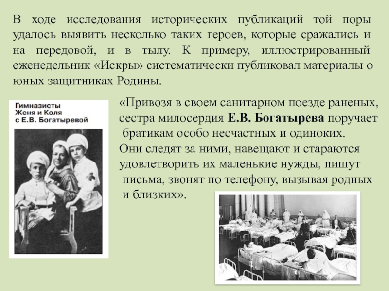 сестра милосердия Е.В. Богатырева поручает