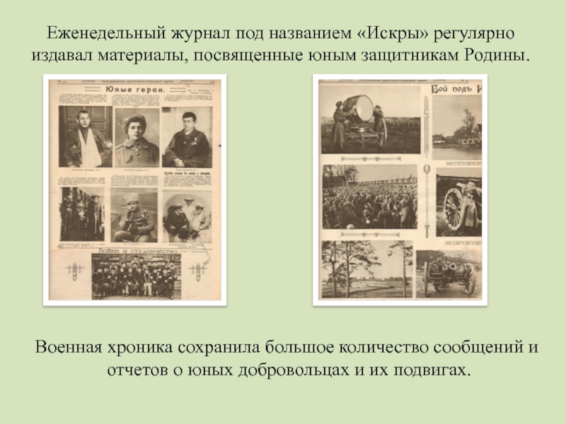 отчетов о юных добровольцах и их подвигах.