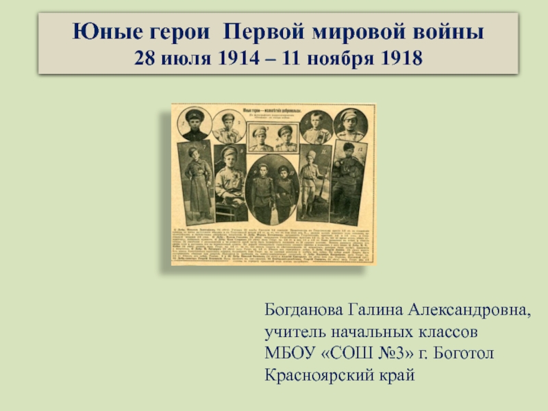 Юные герои Первой мировой войны 1914 г. – 1918 г.