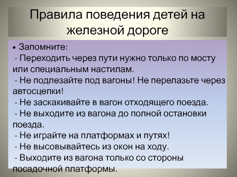 Правила поведения детей на железной дороге