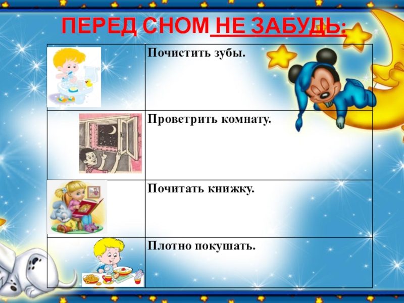 Слайд 10 ПЕРЕД СНОМ НЕ ЗАБУДЬ: