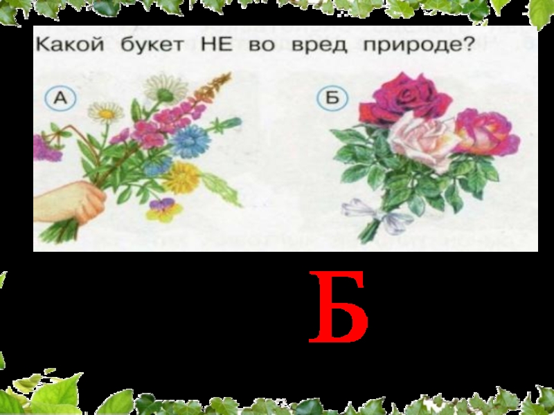 Б) Не будем рвать цветы, ловить бабочек, потому что от этого страдают беззащитные существа и исчезает красота природы.