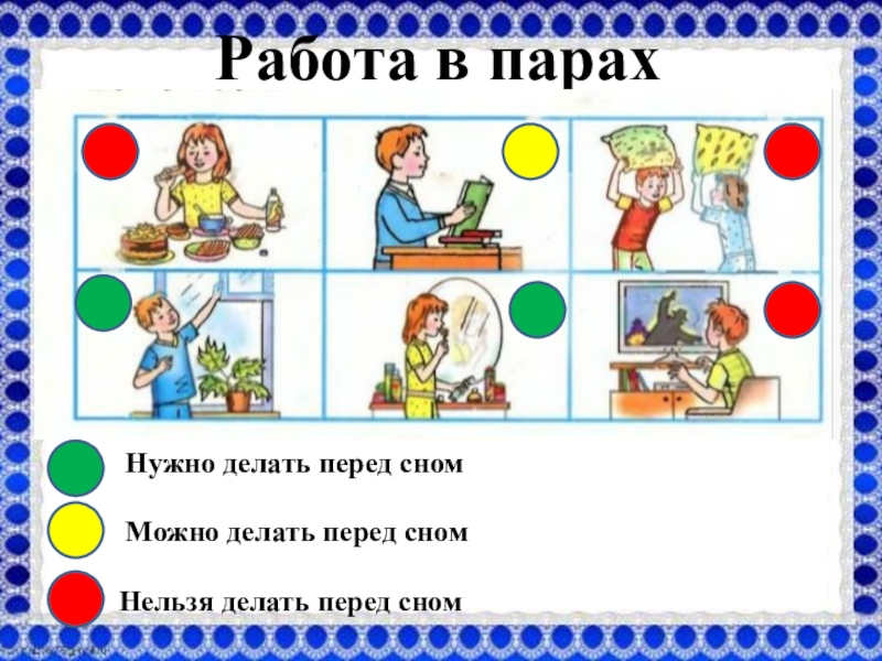 Работа в парахНужно делать перед сномМожно делать перед сномНельзя делать перед сном