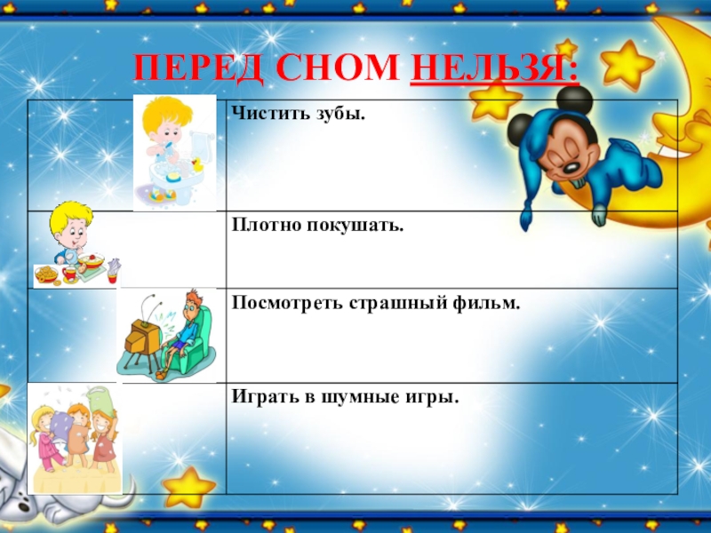 Слайд 11 ПЕРЕД СНОМ НЕЛЬЗЯ:
