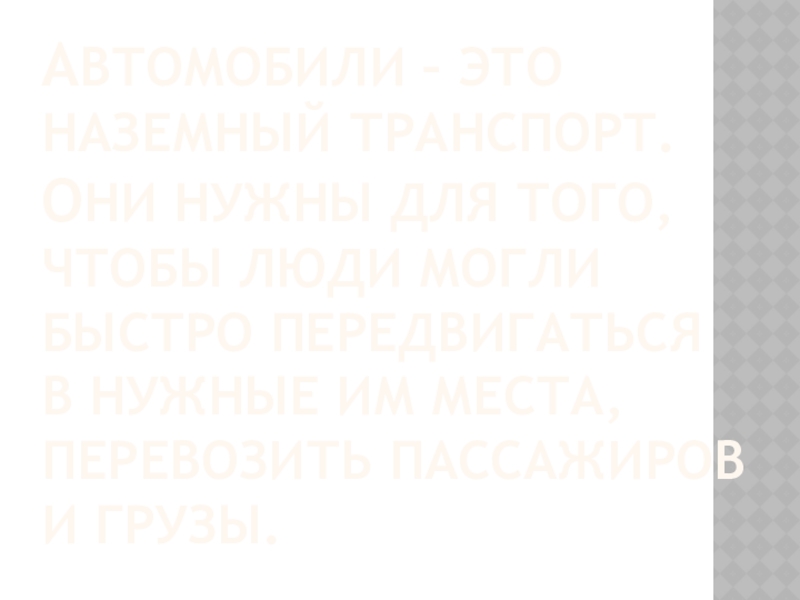 Слайд 34Автомобили – это наземный транспорт. Они нужны для того, чтобы люди