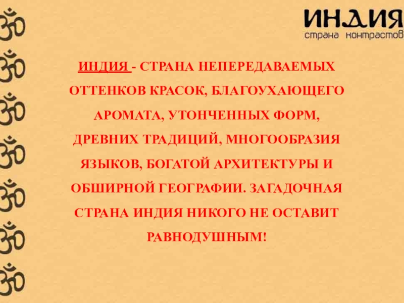 ИНДИЯ - СТРАНА НЕПЕРЕДАВАЕМЫХ ОТТЕНКОВ КРАСОК, БЛАГОУХАЮЩЕГО АРОМАТА, УТОНЧЕННЫХ ФОРМ, ДРЕВНИХ