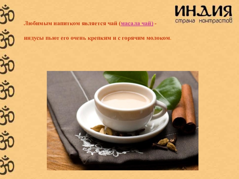 Любимым напитком является чай (масала чай) - индусы пьют его очень