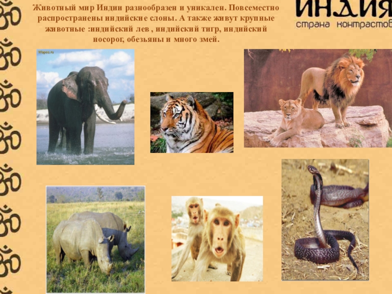 также живут крупные животные :индийский лев , индийский тигр, индийский носорог, обезьяны и много змей.