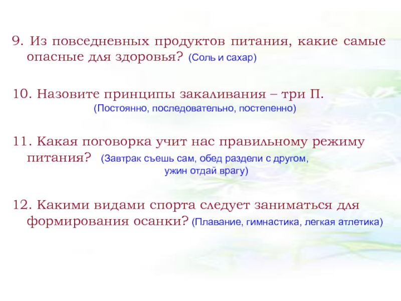 Слайд 409. Из повседневных продуктов питания, какие самые опасные для здоровья?