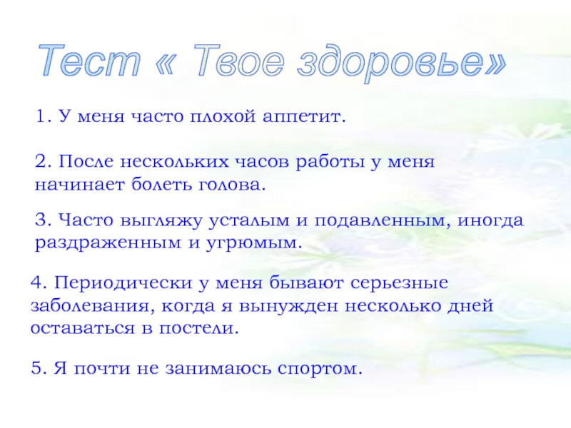 Тест « Твое здоровье»