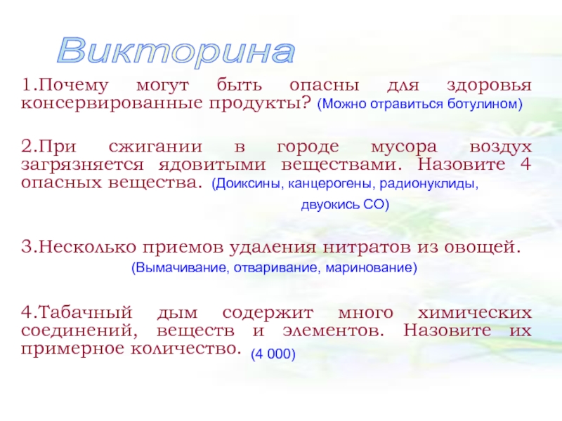 Слайд 381.Почему могут быть опасны для здоровья консервированные продукты?