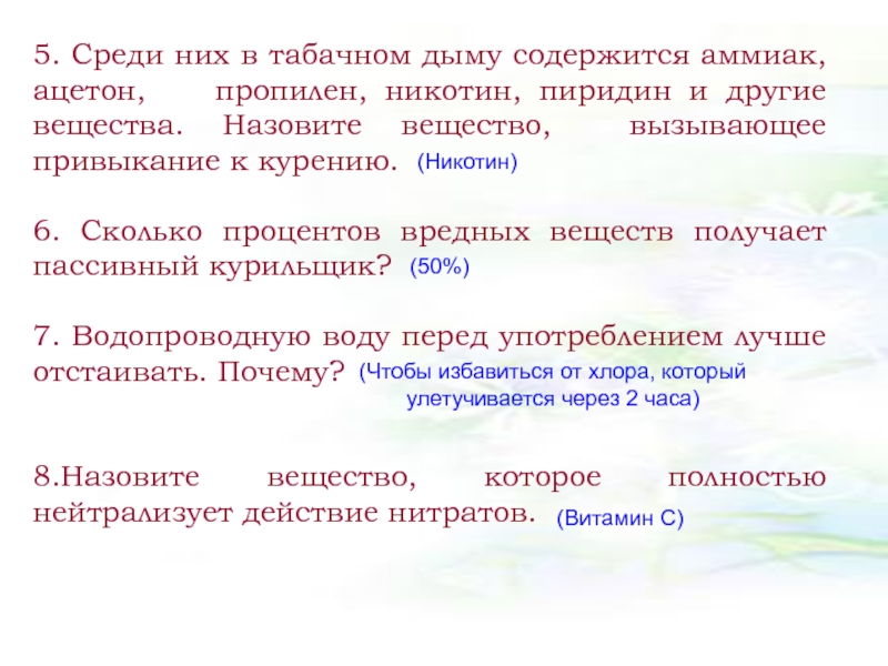 Слайд 395. Среди них в табачном дыму содержится аммиак, ацетон, пропилен,