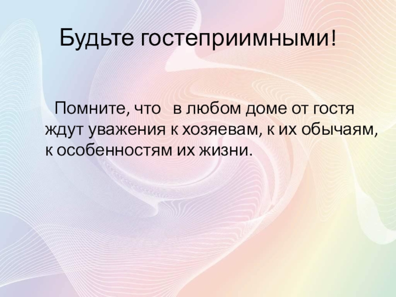 любом доме от гостя ждут уважения к хозяевам, к их обычаям, к особенностям их жизни.