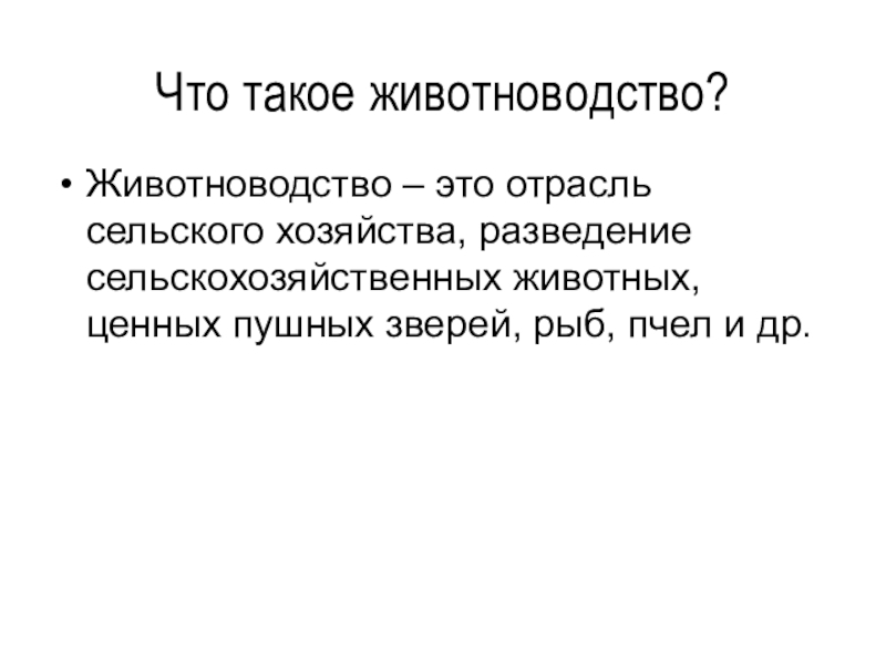 Животноводство – это отрасль сельского хозяйства, разведение сельскохозяйственных животных,