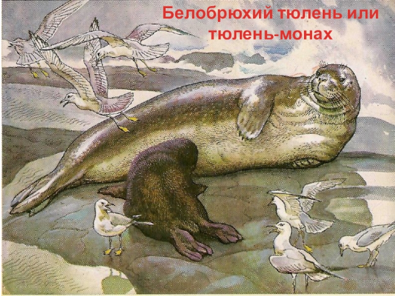 Слайд 10Белобрюхий тюлень или тюлень-монах