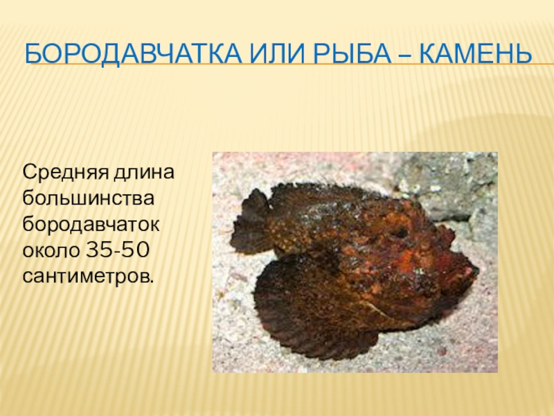 Бородавчатка или рыба – каменьСредняя длина большинства бородавчаток около 35-50 сантиметров.