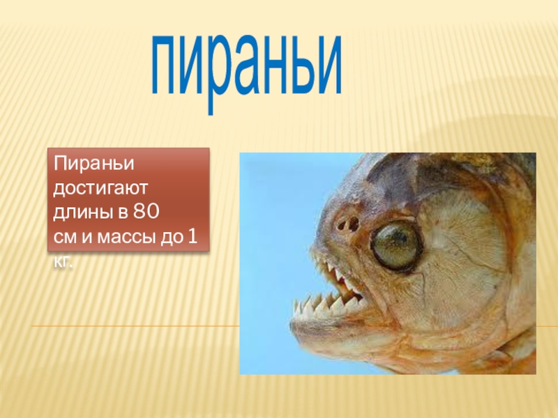 Пираньи достигают длины в 80 см и массы до 1 кг.