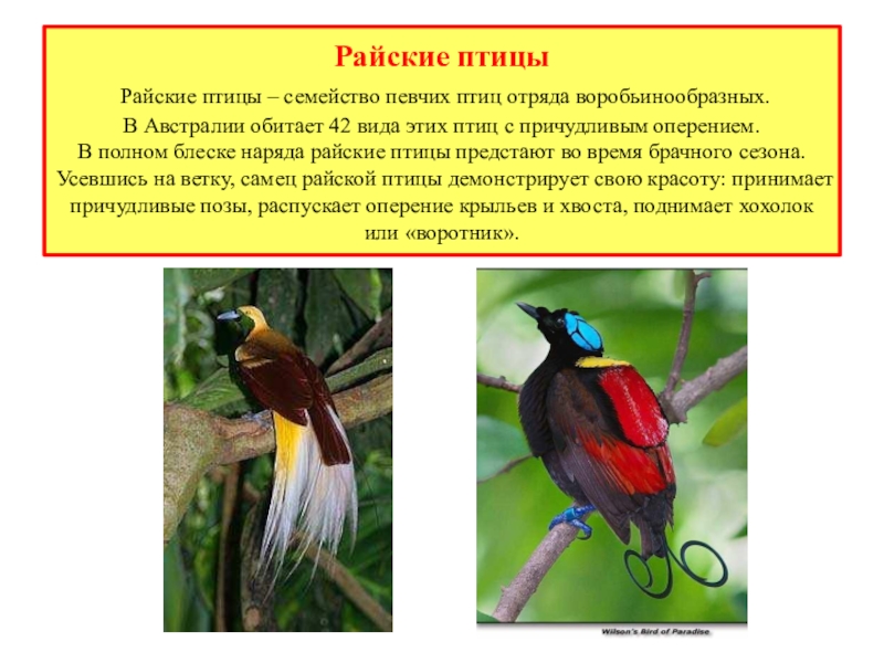Райские птицы – семейство певчих птиц отряда воробьинообразных.