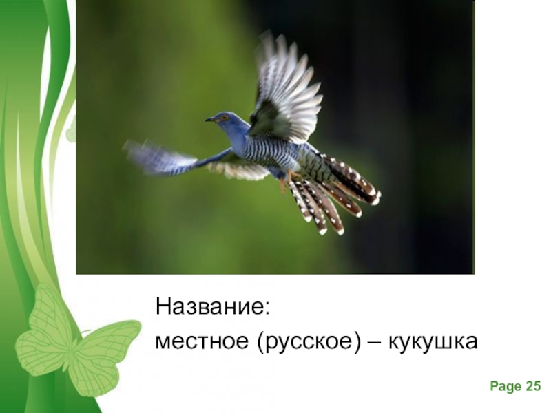 Название:местное (русское) – кукушка
