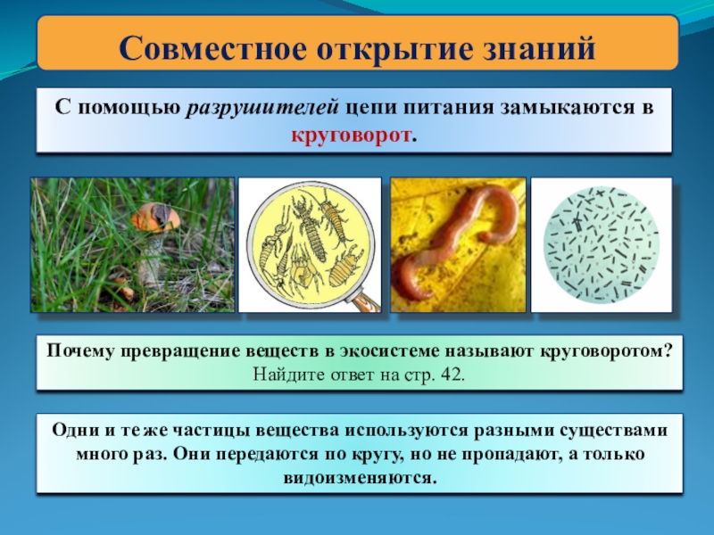 (мёртвые остатки организмов, почва, питание)